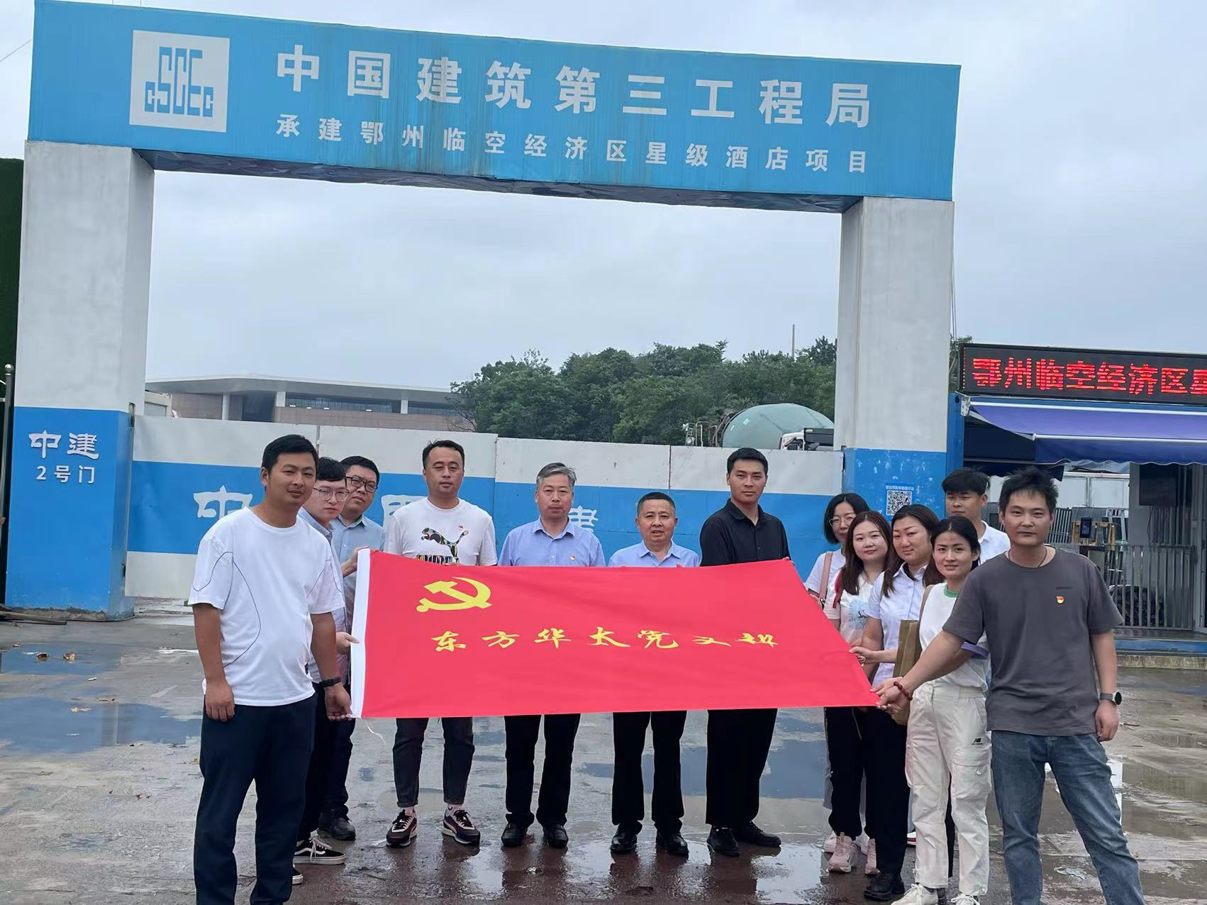 公司黨支部于2023年6月17日組織全體黨員、入黨積極分子及項目群眾代表等前往公司負責承監(jiān)的鄂州市臨空經(jīng)濟區(qū)星級酒店項目開展迎七一“學思想、強黨性、重實踐、建新功”主題教育與項目聯(lián)建活動。